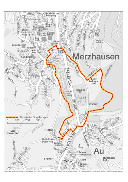 Verzichtet man auf einen Teilbereich des Vogellehrpfades, um Richtung Biezighofen und Sölden nach Bollschweil zu wandern, so geht man bei der Orientierungstafel an der Schloßbergbrücke durch Au hindurch auf der linken Bachseite zur Haltestelle „Selzenstraße“ und steigt dort in den Erlebnispfad Hexental ein.